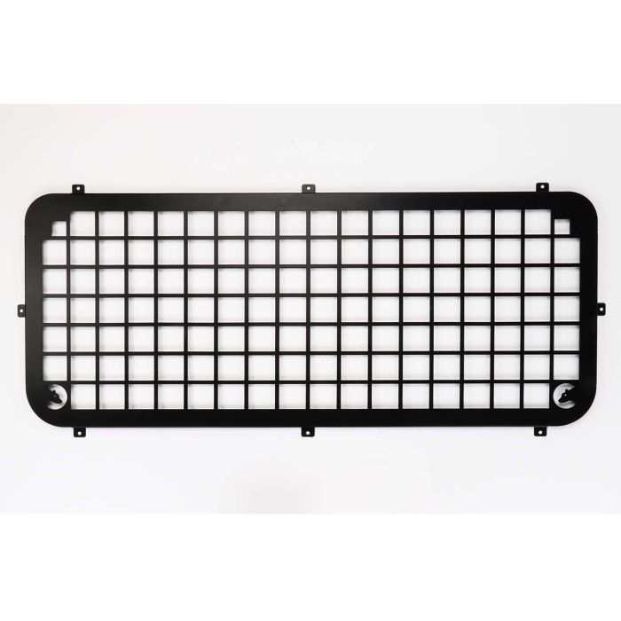 Fenstergitter, für Land Rover Defender 90/110, für die hinteren Seitenfenster, Material: Aluminium, eloxiert, schwarz pulverbeschichtet, Lieferung inkl. Blindnieten